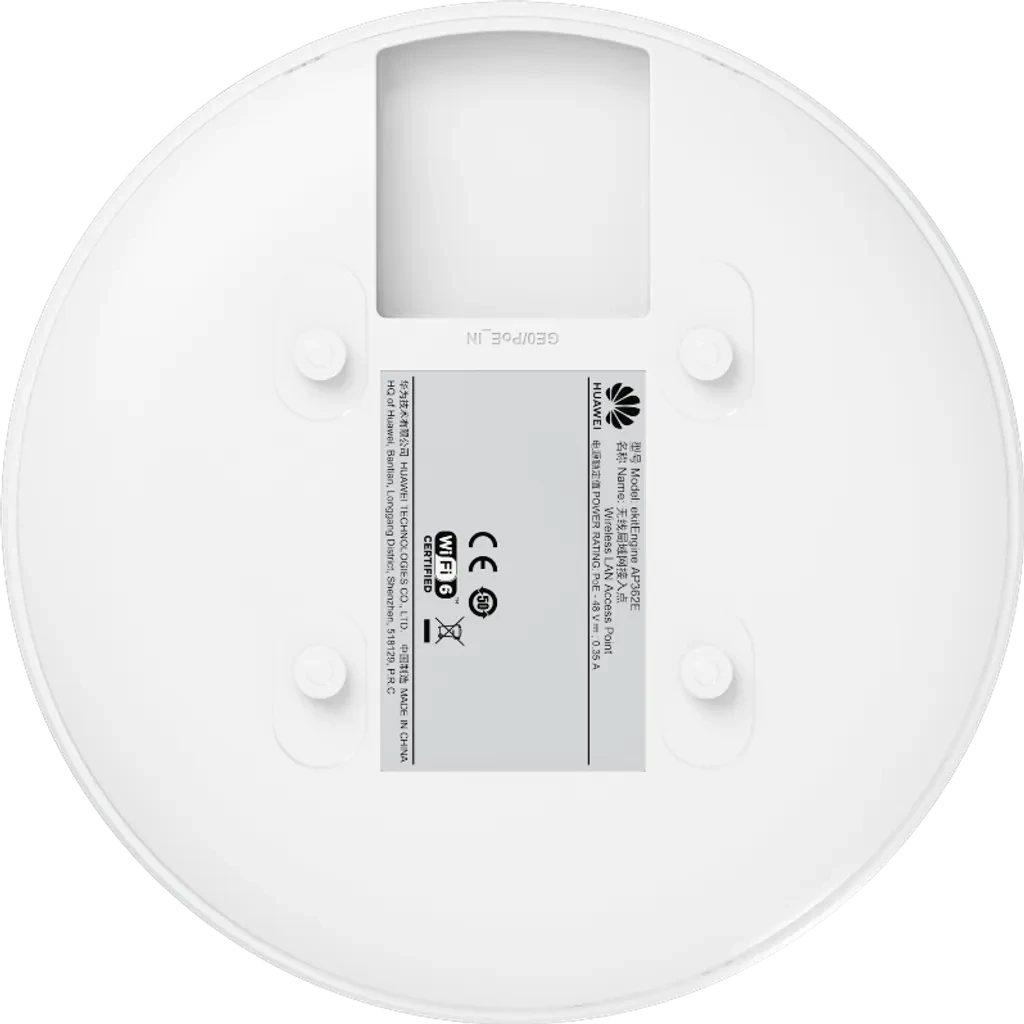 AP362E. AP Huawei eKit Wifi 6 con velocidad de 2.975 Gbps con doble banda se recomienda para 100 usuarios concurrentes cuenta con un puerto de 1GE y un alcance optimo de 20m
