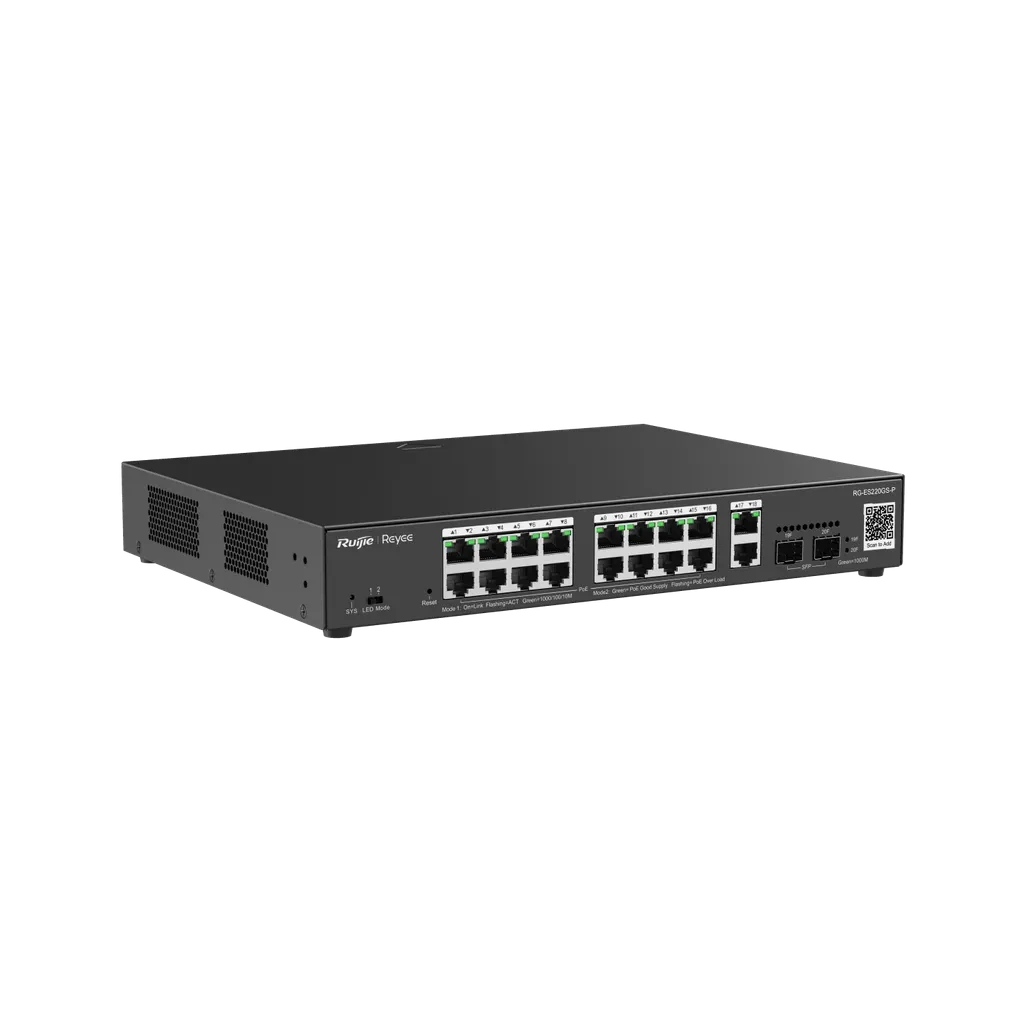 RG-ES220GS-P. Switch Smart cloud REYEE 16 puertos PoE Giga ethernet 2 puertos Gigabit 2 SFP 250W.