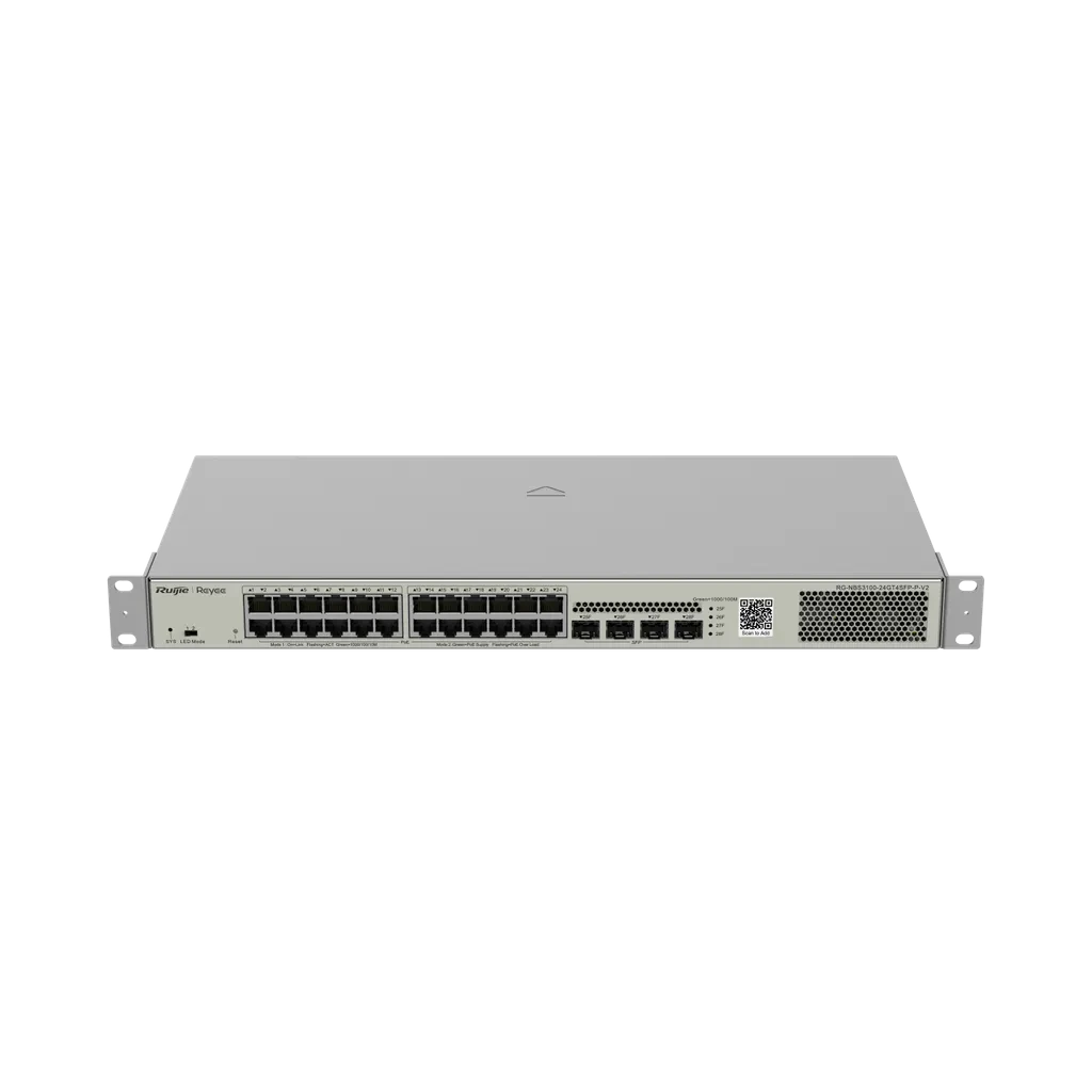 RG-NBS3100-24GT4SFP-P-V2. Switch REYEE administrable por cloud 24 puertos PoE Gigabit 4 Puertos SFP.